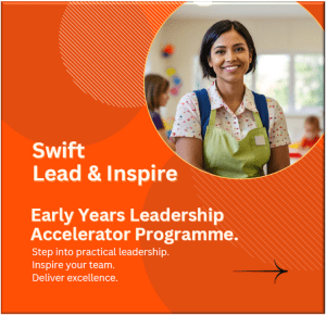 Ready to step into leadership with confidence? The Swift Lead & Inspire: Early Years Leadership Accelerator Programme is a practical, fast-paced programme designed to help you build the real-world skills needed to lead and manage within an Early Years setting.